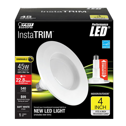 This durable fixture is suitable for use in wet locations and comes standard with an E26 base adapter and torsion spring 'C' shaped brackets. It is constructed with die-cast aluminum heat sink, impact resistant lens, and baffle trim. With a 50,000 hour lifespan, this fixture is perfect for use in commercial or residential applications.